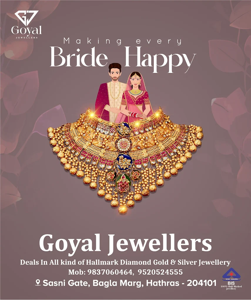 Welcome to Goyal Jewellers, your trusted jewellery store in Hathras, Uttar Pradesh. With over 28 years of experience in the industry, we take pride in offering exquisite jewellery pieces that will leave you captivated. From timeless diamond necklaces to intricately designed gold bangles, our collection is a true reflection of craftsmanship and elegance. We understand the significance of every piece of jewellery, and that's why we strive to provide you with the highest quality products that are sure to become heirlooms for generations to come. Visit Goyal Jewellers today and let us adorn you in luxury.